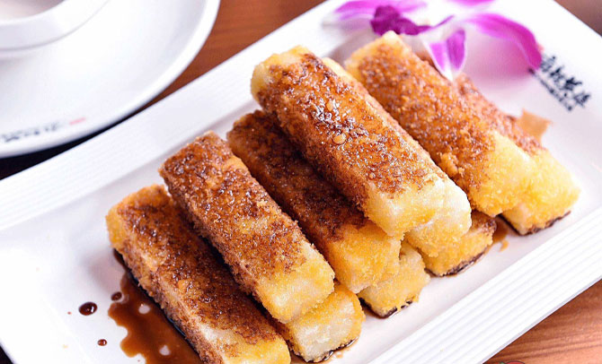 红糖糍粑是用红糖、糯米制作的一道川渝地区传统的小吃。红糖营养丰富,释放热量快,营养吸率高,除含蔗糖以外,还含有少量的铁、钙、胡萝卜素等物质。